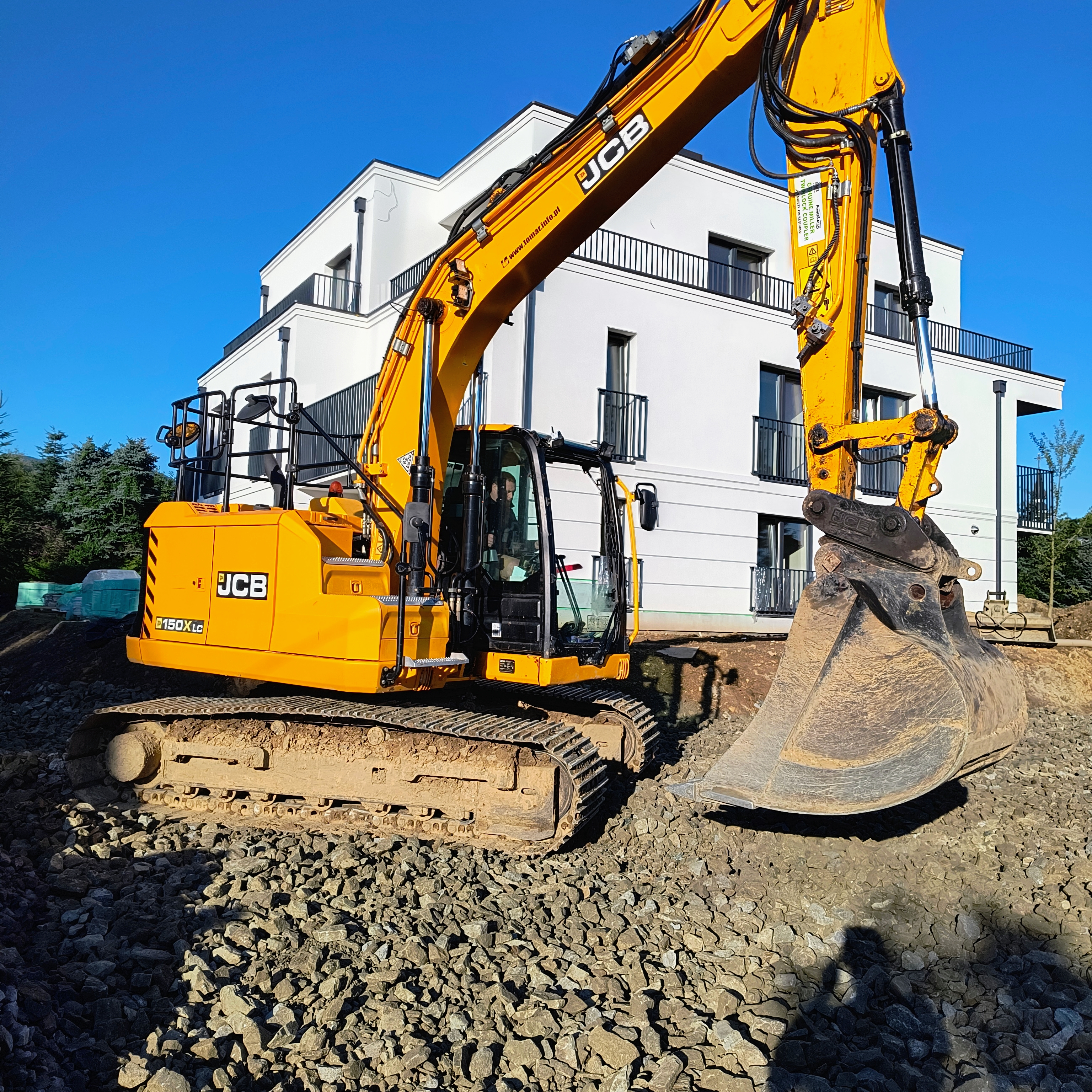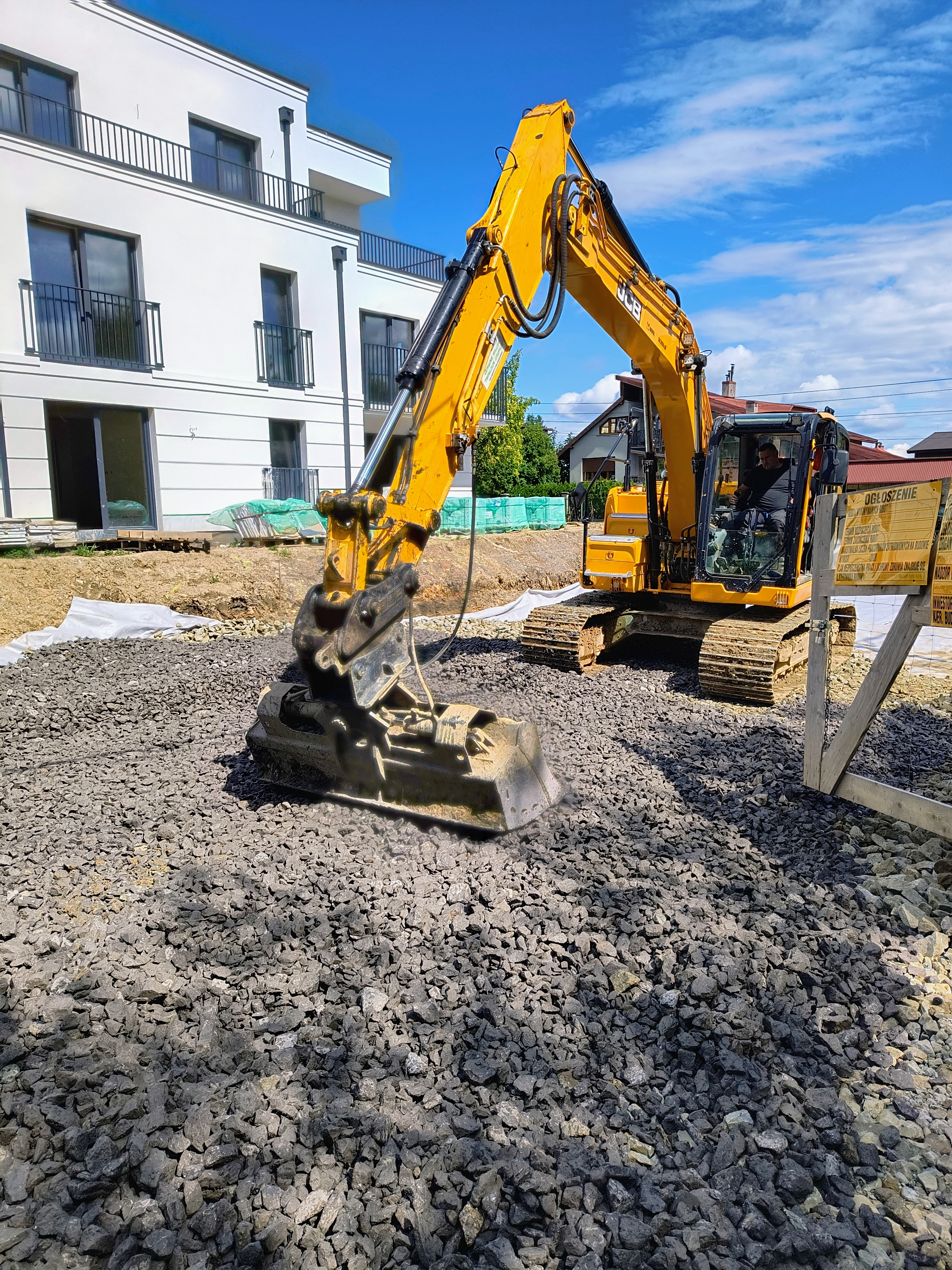 Prace ziemne w Bielsku-Białej przy nowo powstałym bloku mieszkalnym.
