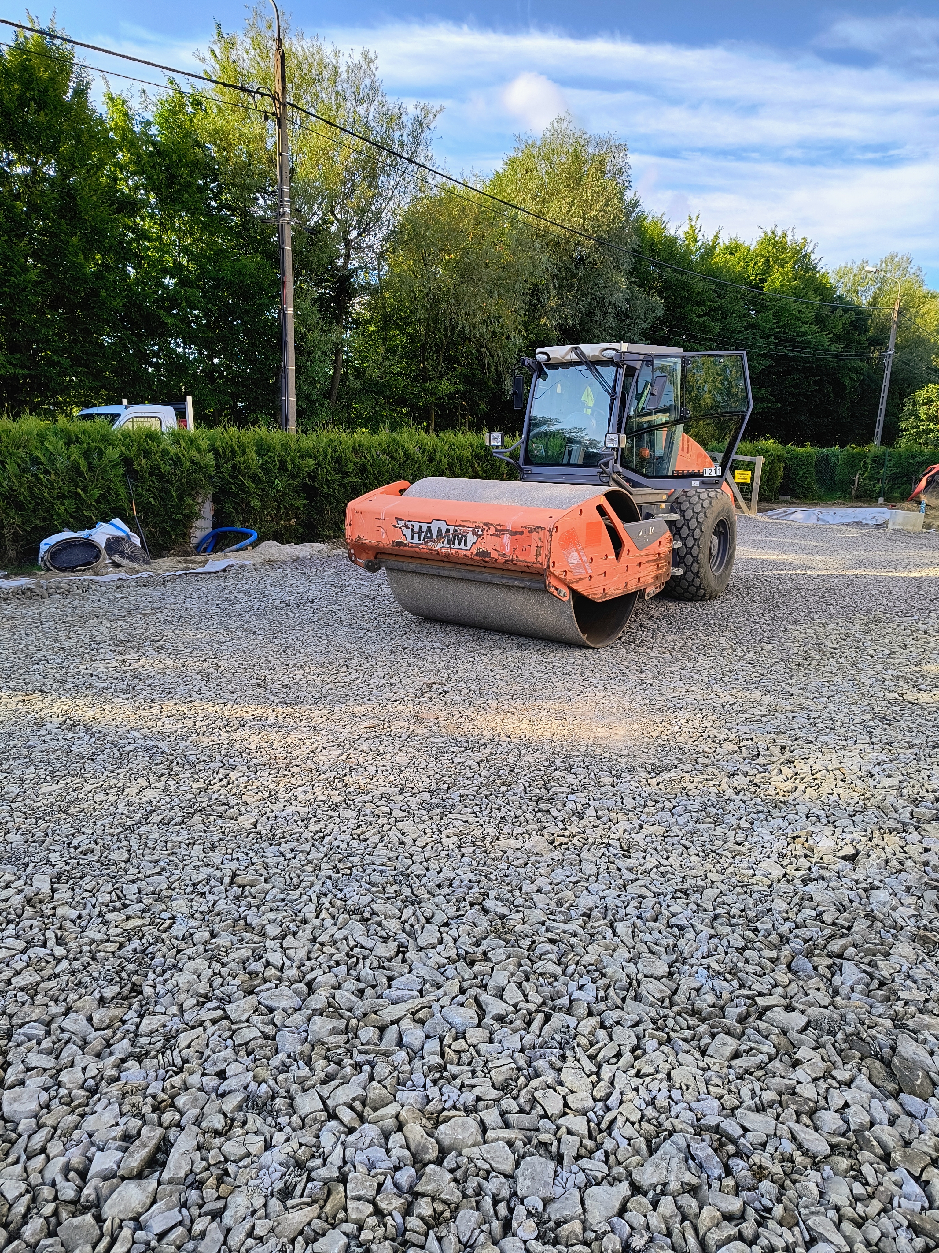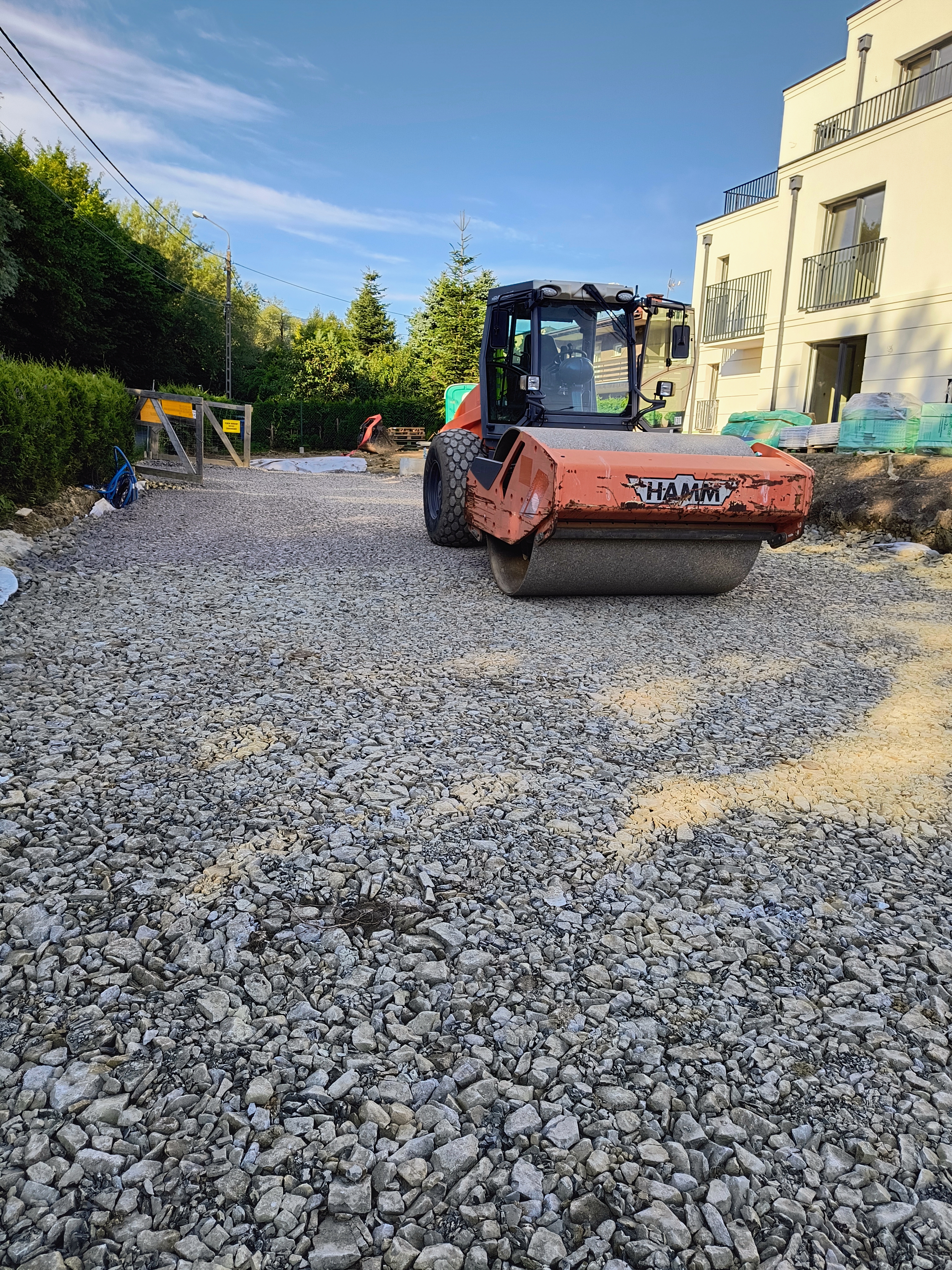 Zaspypanie odpowiednimi warstwami kruszywa wraz z zagęszczaniem w celu uzyskania odpowiednich parametrów technicznych.