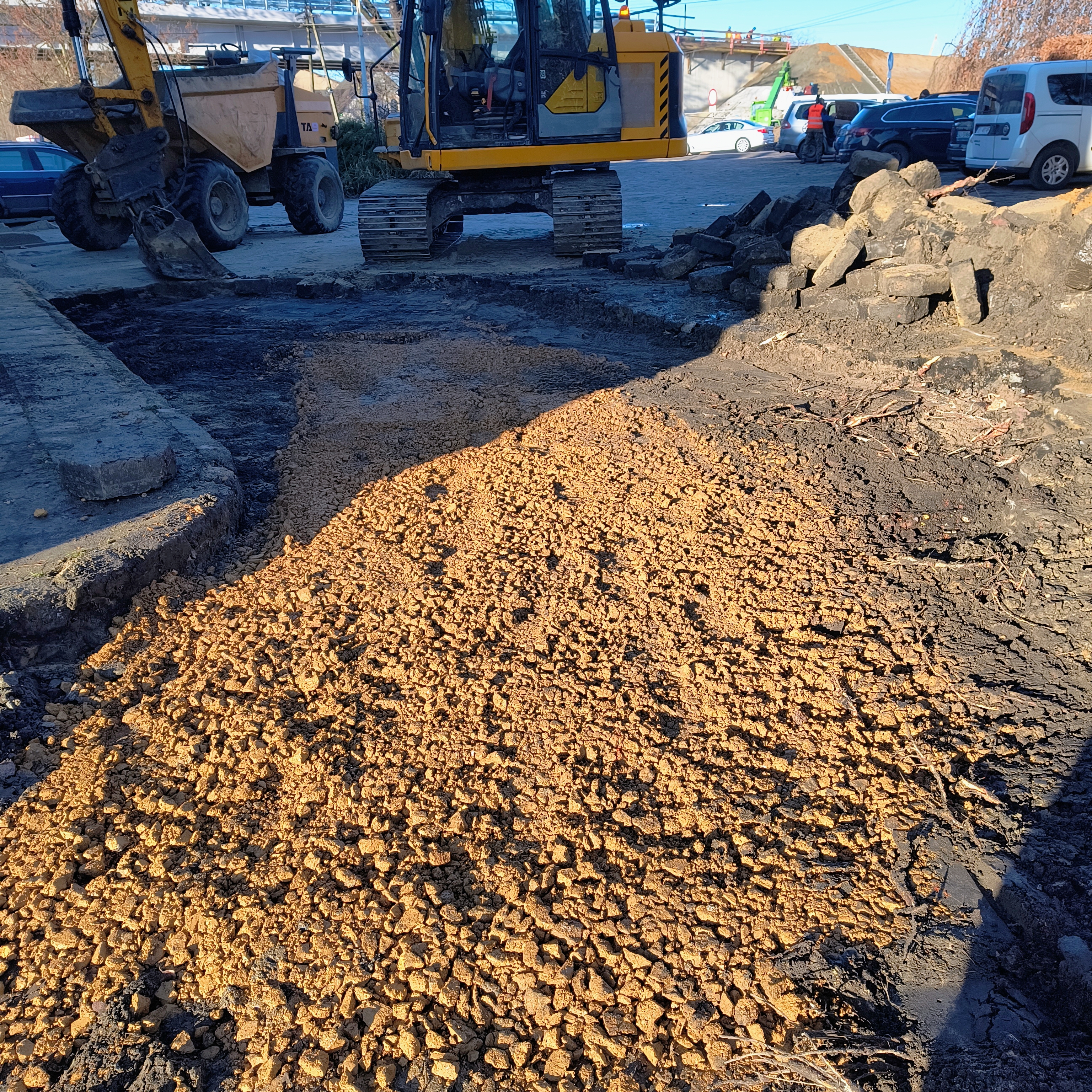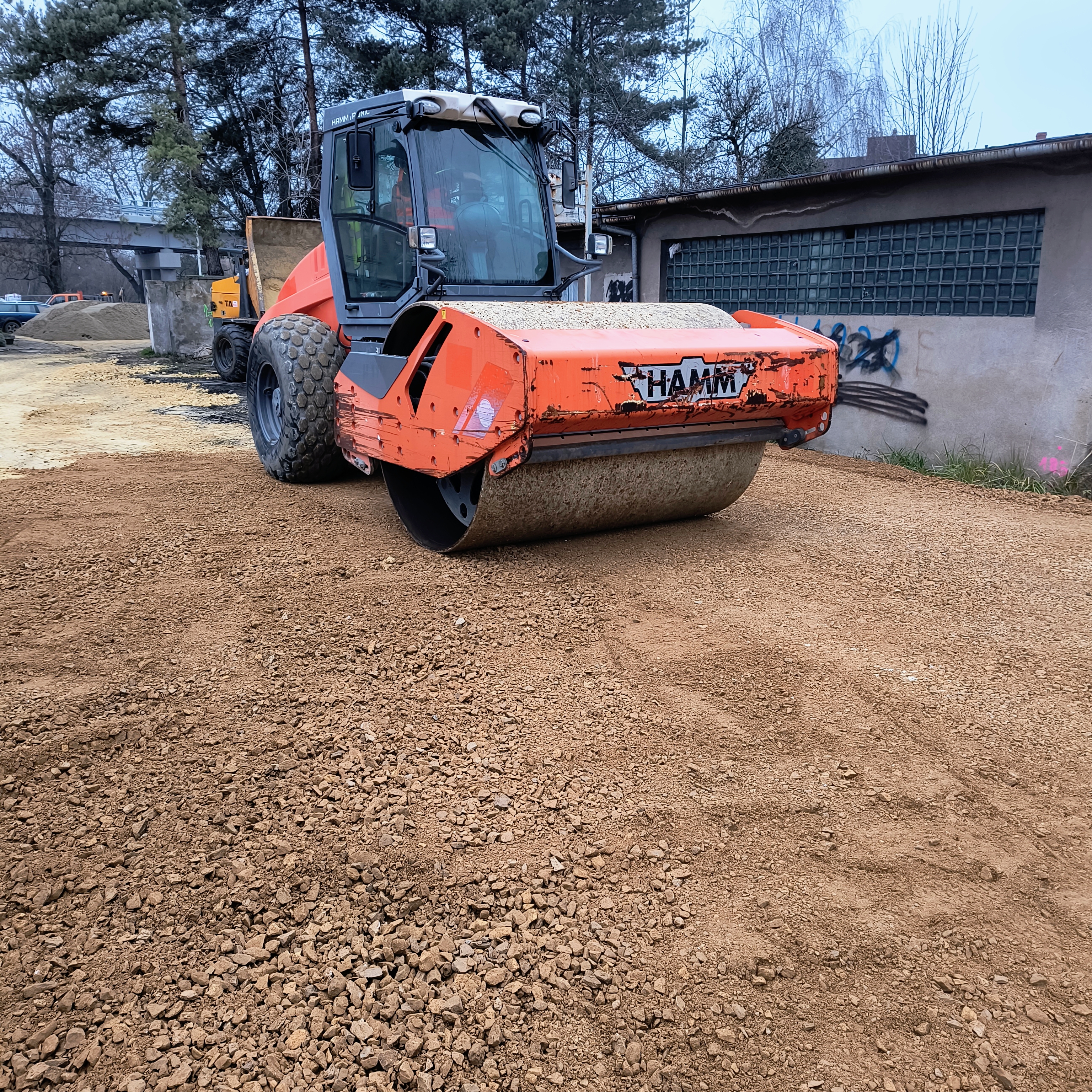 Wbudowanie kruszywa i zagęszczenie do odpowiednich parametrów.