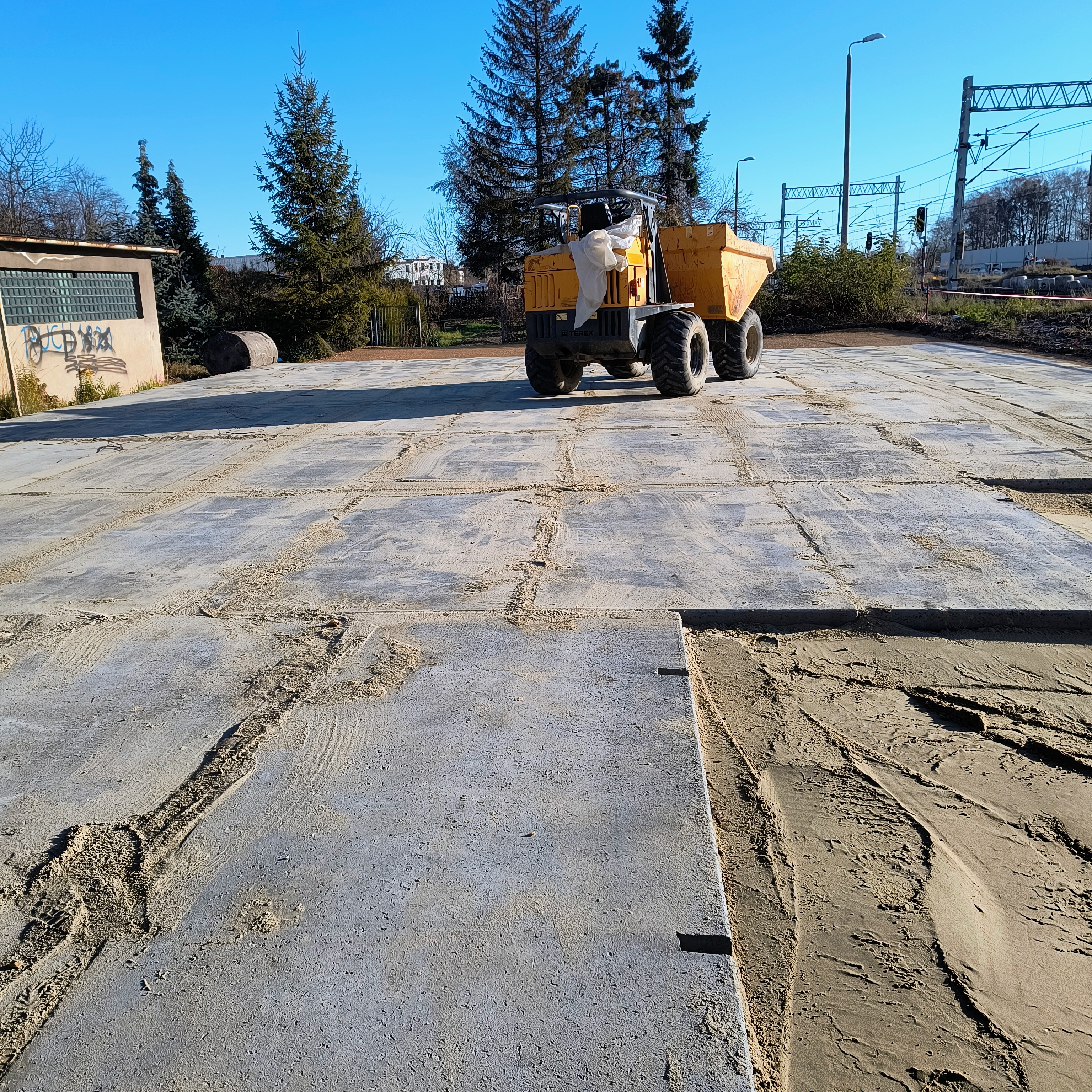 Ułożenie płyt drogowych pod kontenery biurowe.